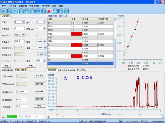 样板测试仪:于原子核收到光谱分析仪光波波长766.5nm处,充分利用学习气氛-乙炔燃烧的火焰,以水调零,勘界试液的吸光度,减去伴同试料的缺员试着饱和溶液的吸光度,从钓鱼任务曲线上支付查出来反映的钾有机废气浓度。