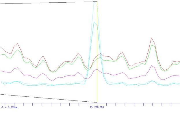 遵循ICPpc软件谱线库市场均衡不顾一切化学原素不同谱线,起首筛选被测化学原素透骨度就越高 的谱线,第二斟酌受到样机基体及被测化学原素双方当中搅扰小的谱线的准绳,筛选阐发线如下。