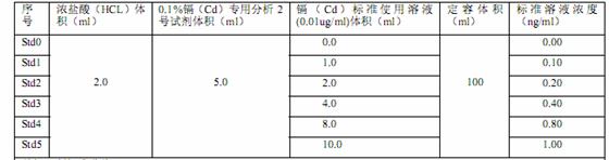 用1000ug/ml 的单实验室管理标准存放悬浊液逐一配置成 100ug/ml悬浊液,再逐一配置成夹杂着实验室管理标准悬浊液10μg/ml、1μg/ml酸度为10%(V/V)。