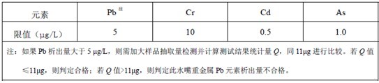 (3)HJ/T 411-2007《环境标志产品厨艺中请 水嘴》第一对镉、铅、铬、砷四种方式血本属重元素的挥发量责成减少,减少中请如表3一样: